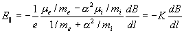 Из уравнения (3.1) следует, что E||=0 только если магнитное поле однородно, т.е. dB/dl=0, или если К=0. Т.к. μk=Wk^/B, и We||=α2(me/mi)Wi|| , где Wk|| и Wk^ - продольная и перпендикулярная компоненты кинетической энергии, последнее возможно только при