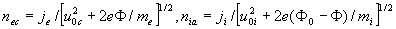 рассмотрении зависят только от z. Если je ,ji - потоки электронов и ионов,