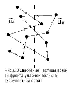 обусловлено её рассеянием, равно Δp=(pf -pi)u/v, u/v«1 ( где pf , pi - импульсы частицы до и после рассеяния, u - скорость плазмы). Двукратное пересечение фронта дает изменение импульса Δp=(pf -pi)u Δp=](pk -pi)u1+(pf –pk)u2]/v. Ускорение последнего выражения по потоку частиц в случае, если он близок к изотропному дает среднее изменение импульса за цикл двукратного пересечения ударного фронта