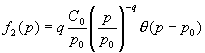 с показателем спектра q=3r/(r-1)=3u1 /(u1-u2) . Для граничного условия вида f1(-¥,p)=A1(p)=C0δ(p-p0) имеем за фронтом ударной волны(х>0)