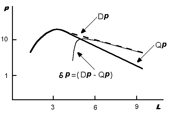 сплошной толстой кривой схематически показано радиальное распределение давления в магнитоспокойных условиях (Qp). При данном распределении давления на L<3 кольцевой ток имеет восточное направление (но вносит малый вклад в интегральное магнитное поле в силу больших значений