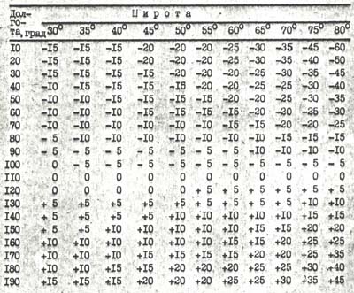 (влево) от северного конца полуденной линии, знак плюс - вправо