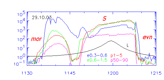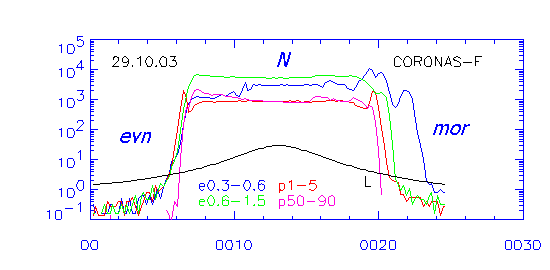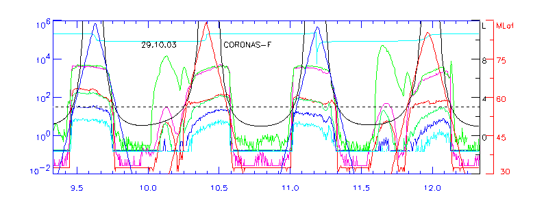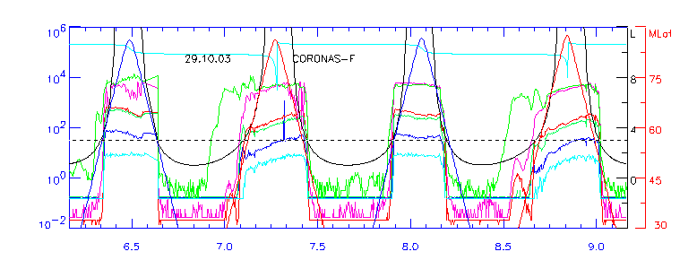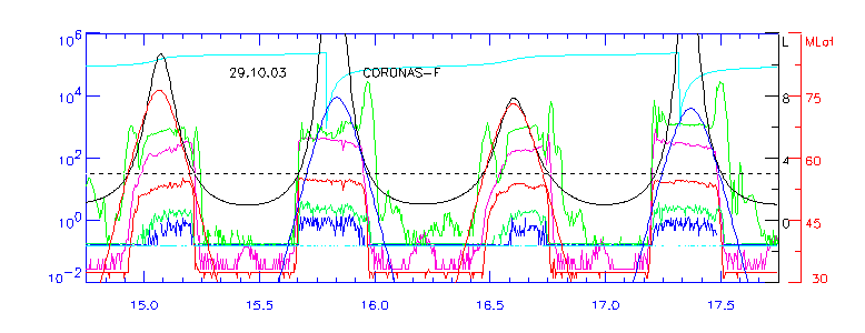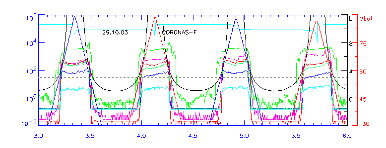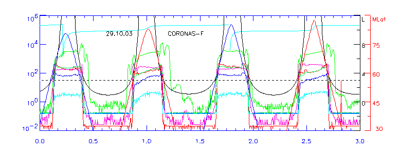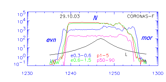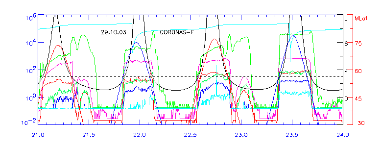 нижней части рисунка. 27.10.03 максимум внешнего радиационного пояса наблюдался