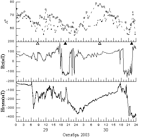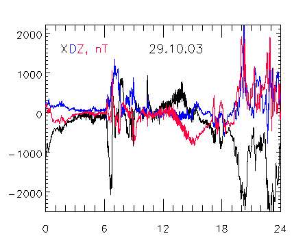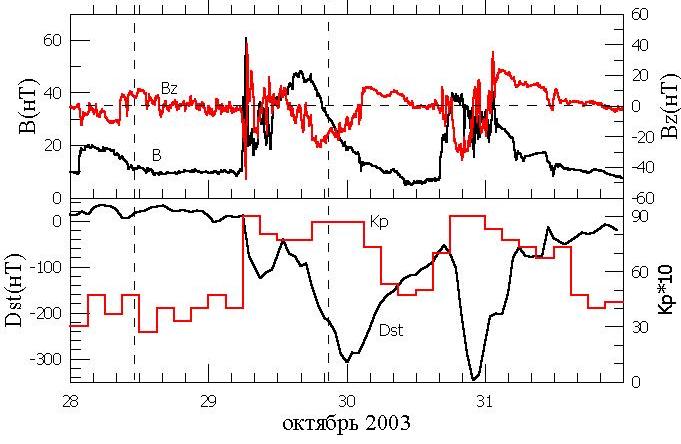 Космические исследования № 5 и 6 А.В. Дмитриева и А.В. Суворовой ГЕОСИНХРОННЫЕ ПЕРЕСЕЧЕНИЯ МАГНИТОПАУЗЫ 29-31 ОКТЯБРЯ 2003 ГОДА PDF-файл статьи Криволуцкого и др. "Изменения в озоносфере..." ЦАО . РЕЗУЛЬТАТЫ ИЗМЕРЕНИЯ ДОЗ В ОКТЯБРЕ - НОЯБРЕ 2003 ГОДА ... В.М. ПЕТРОВ и др, PDF - file ИМБП ЭФФЕКТЫ МАГНИТНОЙ БУРИ 29-31 ОКТЯБРЯ 2003 Г.НА СРЕДНЕШИРОТНЫХ КВ- РАДИОТРАССАХ (ПО ДАННЫМ ДОПЛЕРОВСКИХ ИЗМЕРЕНИЙ) Бочкарев В.В., Петрова И.Р., Теплов В.Ю. , PDF-file Казанский государственный университет Среднеширотные сияния на юге Восточной Сибири во время больших геомагнитных бурь 29-31 октября и 20-21 ноября 2003г. Михалев А.В, Белецкий А.Б, Костылева Н.В., Черниговская М.А, PDF-file (Институт солнечно-земной физики СО РАН, Иркутск а/я 4026.) mikhalev@iszf.irk.ru Проявления внезапного начала...Баишев Д.Г. и др., PDF-fileИКФИА Структура возмущенной магнитосферы Лазутин Л.Л., PDF-file !!! Рисунки к статье в КИ