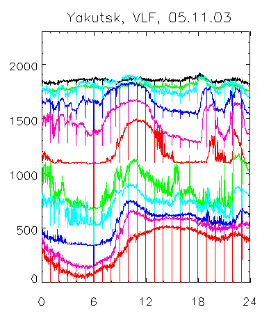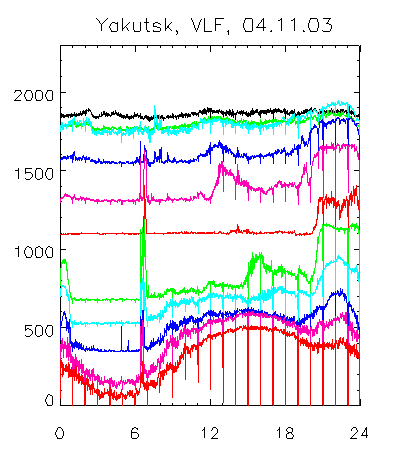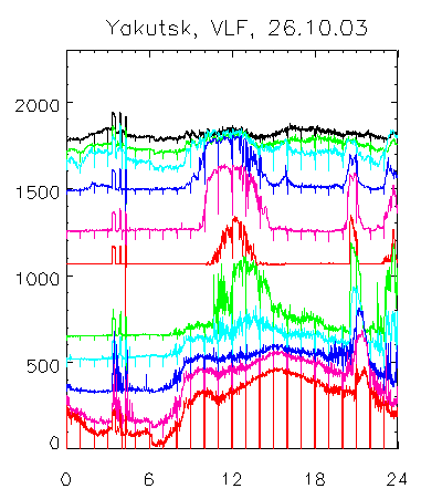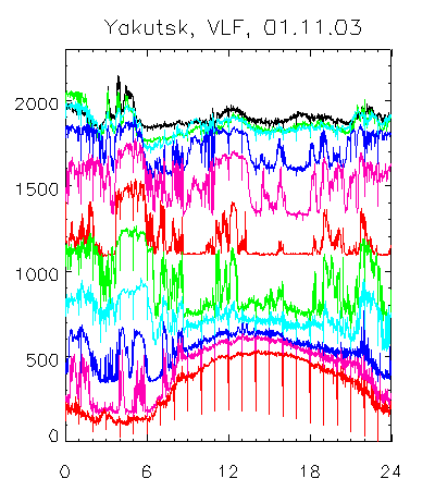 ОНЧ, Якутск, ИКФИАVLF data at frequencies:
