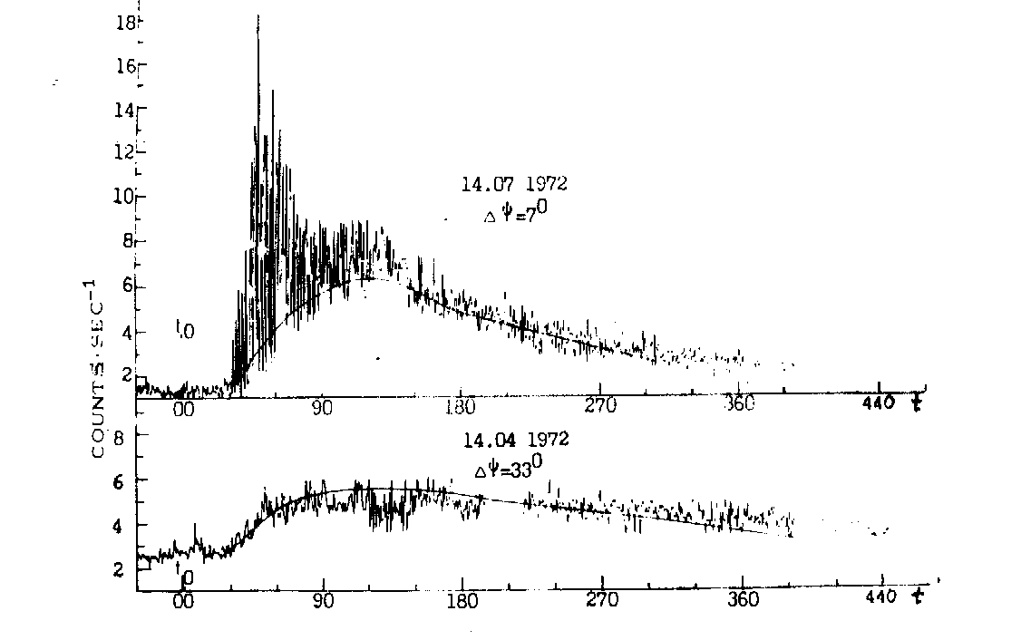 космического радиошума) показали, что потоки солнечных протонов с энергией