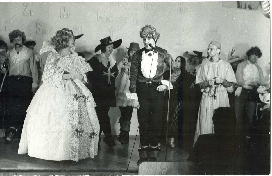 из популярных тогда "Трех мушкетеров", тексты - мои, костюмы изготовили наши женщины, актрисы и и жены актеров,