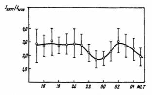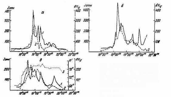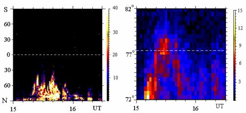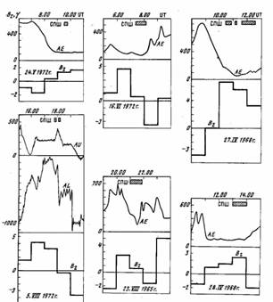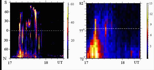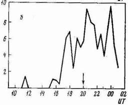 максимуме фазы развития суббури распространяется до таких широт. Обс.