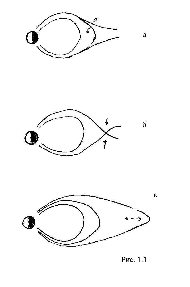 Рис.1.1 иллюстрирует различия в представлениях о геометрии суббуревой неустойчивости. Остановимся коротко на трех основных механизмах активизаций суббури.