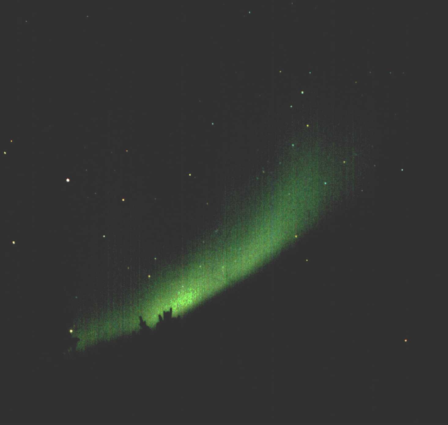 | Этот снимок сделал С-И. Акасофу, один из ведущих исследователей природы полярных сияний. Много лет он проработал директиром Геофизичского Института на Аласке. Его сайт посвящен вопросам физики солнечно-земных связей и полярных сияний This foto was made by S.-I. Akasofu, one of the leading auroral physic scientists. He spend a lot of years at Alaska,working as a director of the Geophysical Institute. His web site is relaed tof the auroral and solar-terestrial physics. | ![]() |